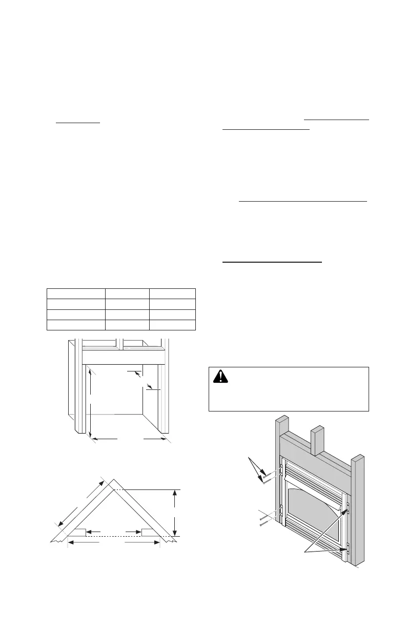 wall opening. If installing a mantel above the