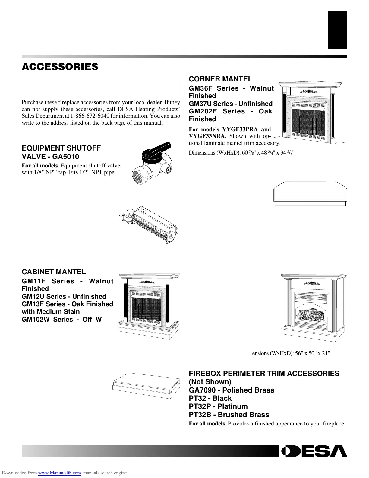 can not supply these accessories, call DESA Heating Products’