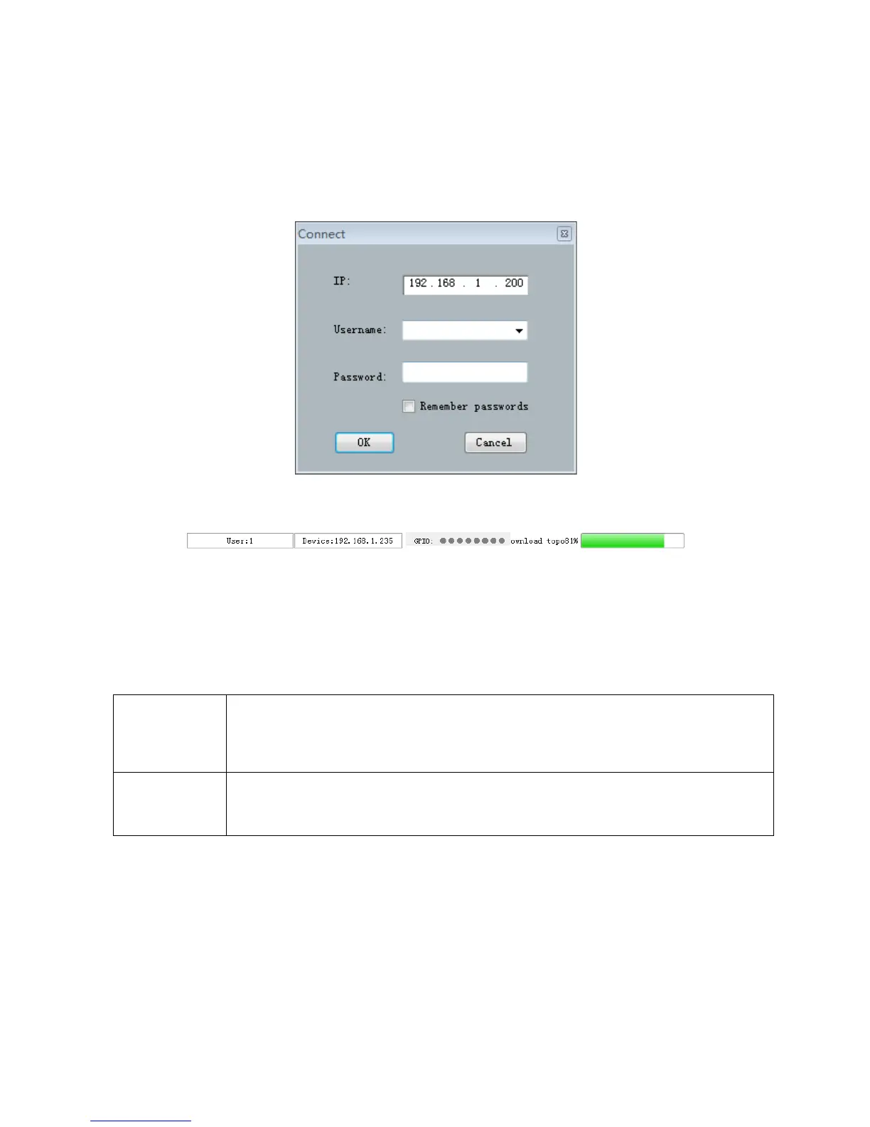 Enter the user name and password (default username “admin”\ password “123456”), click the landing, the status