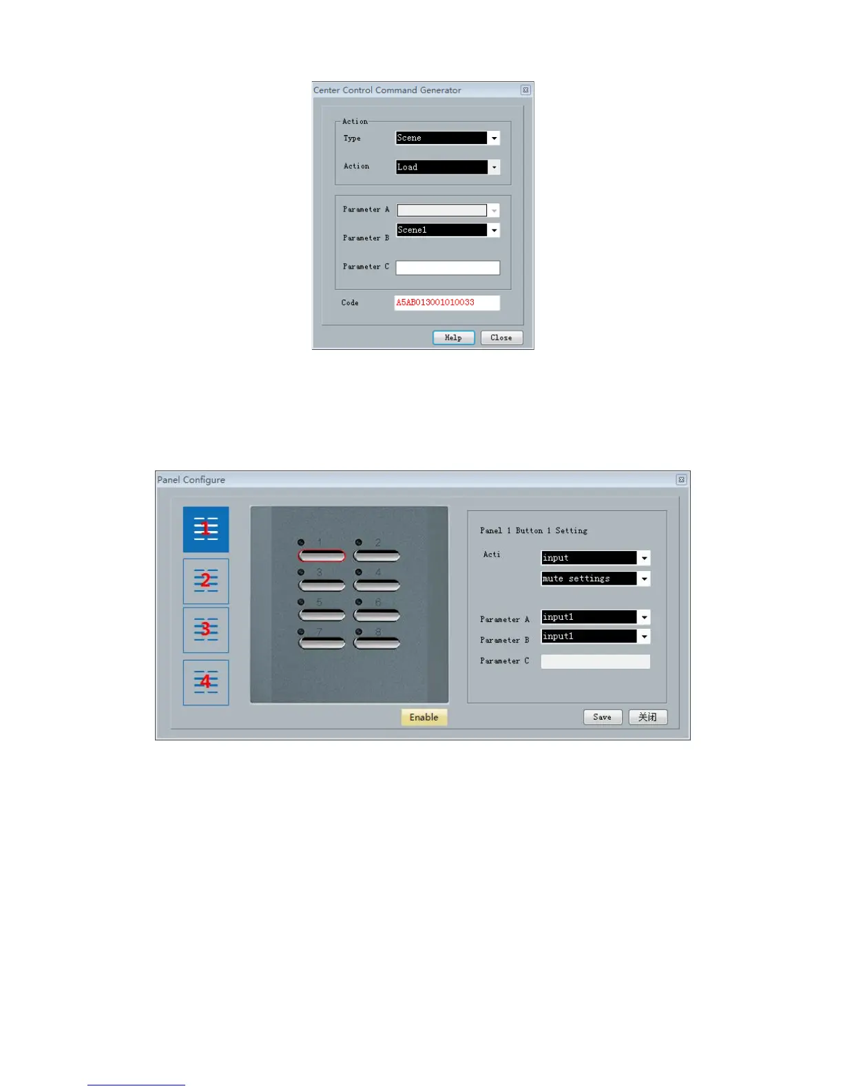 channel" in the parameter 1, 2 in parameters, select the "input 4 channel", input "1" in the parameter 3, save the