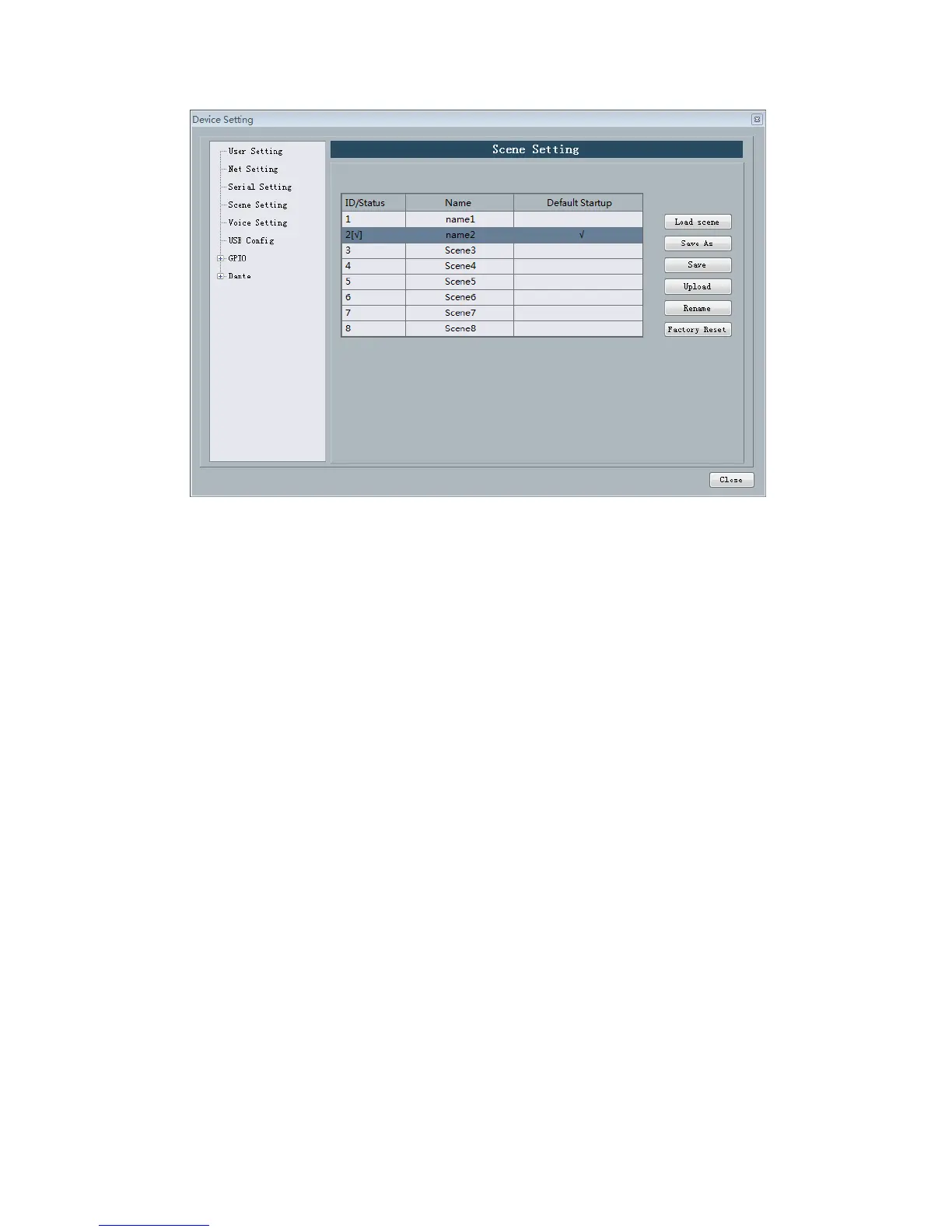 6, restore factory Settings: return all scene configuration for the default configuration.