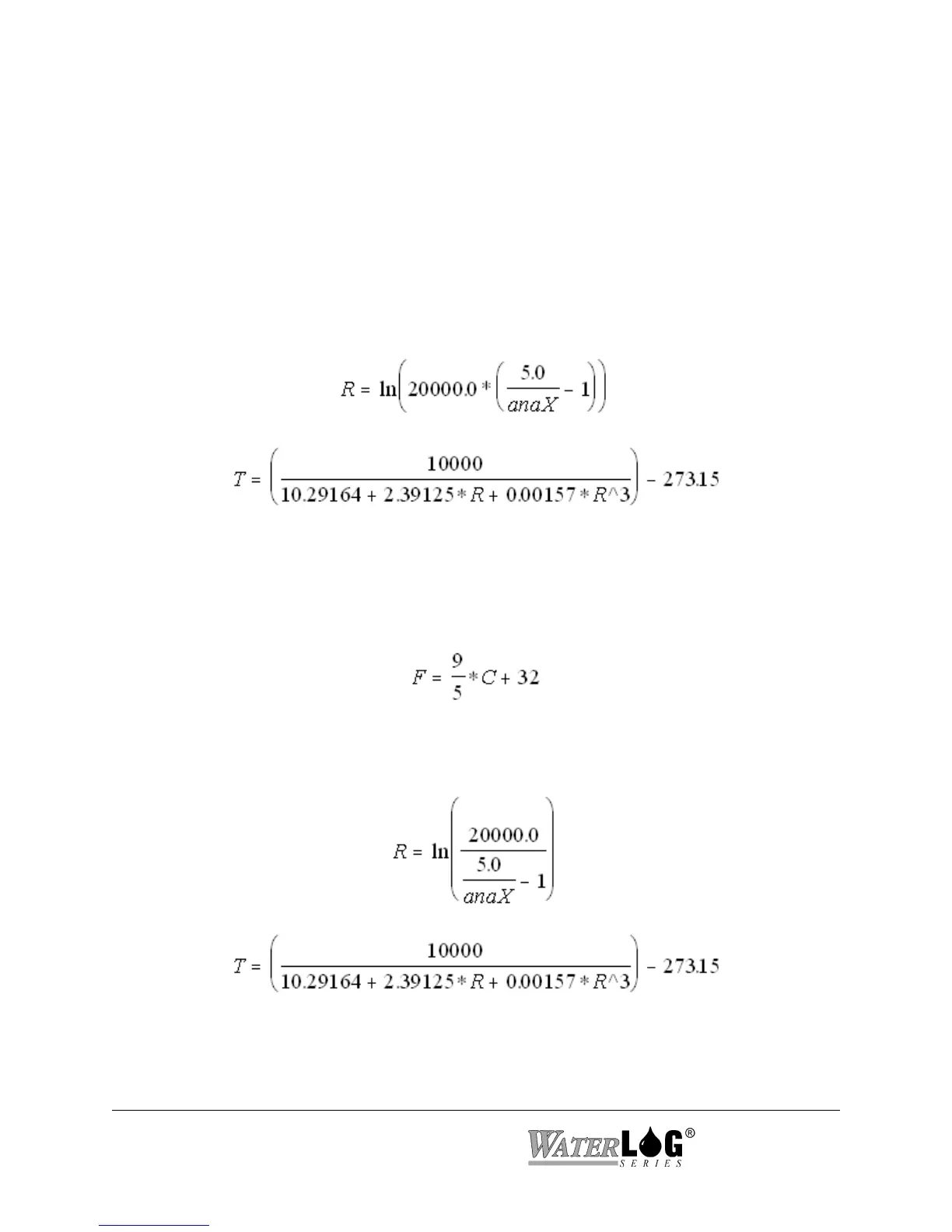 every time the sensor is used. The following temperature equations are for thermistor
