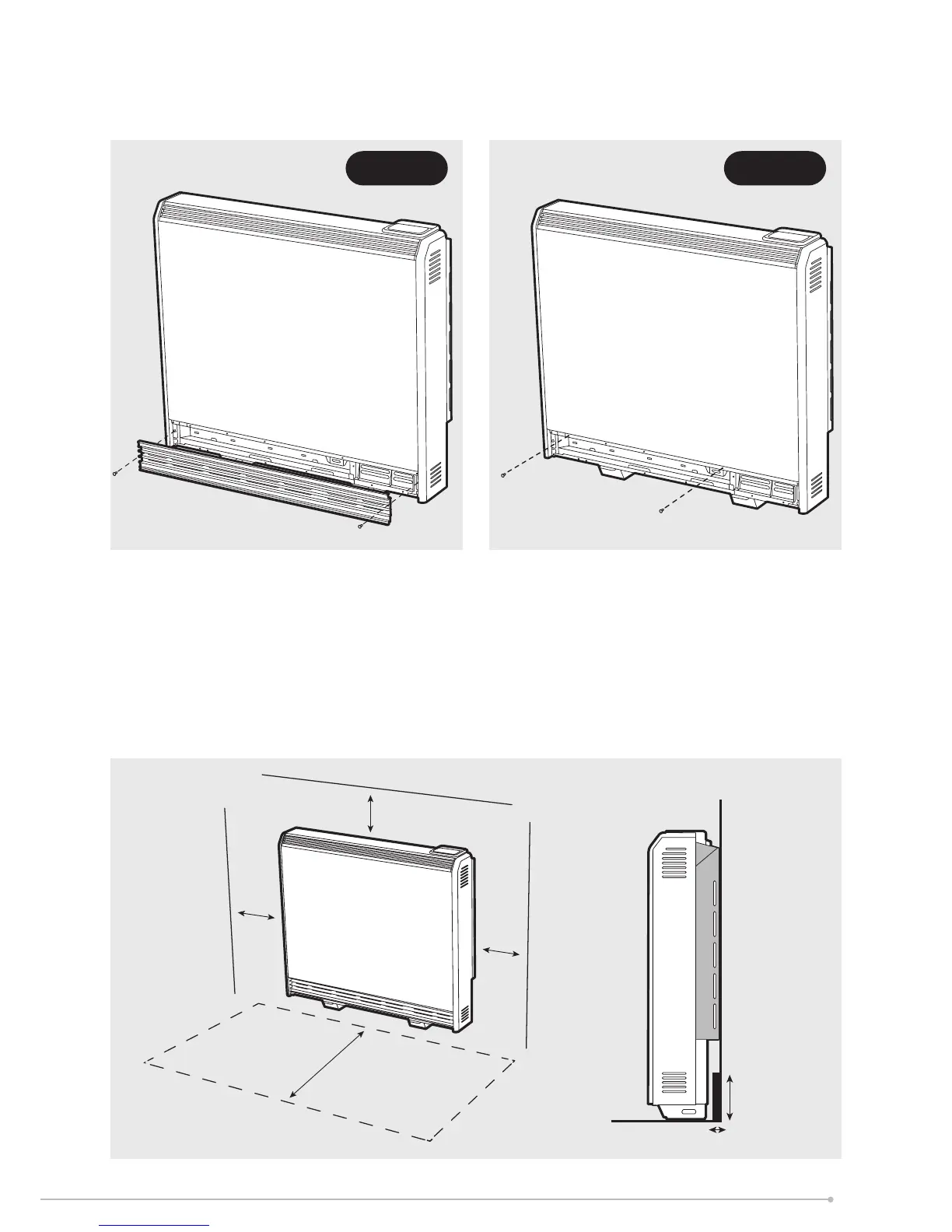 Do not place objects within 300mm of the front of the heater