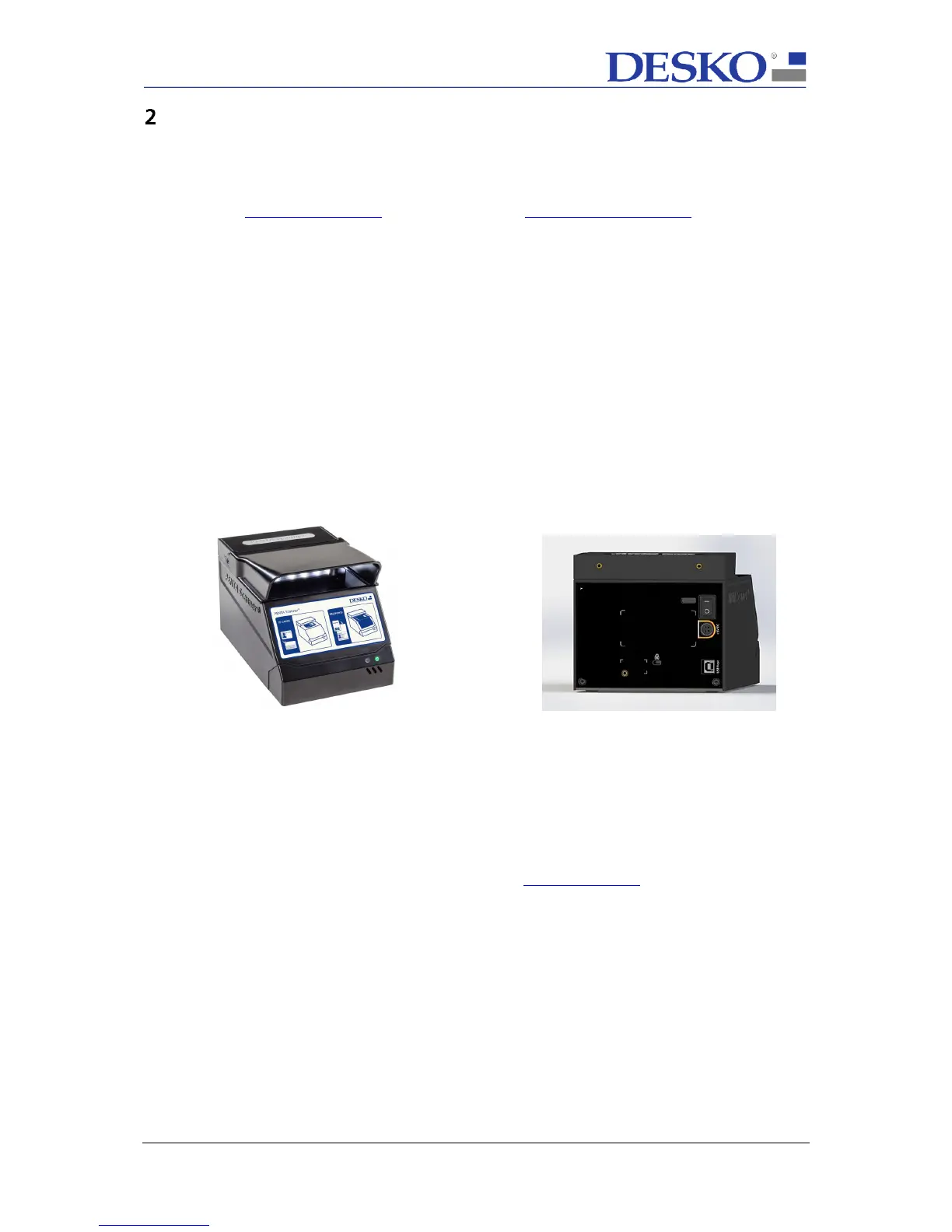 or the RS232 interface. Standard configuration is USB host addressed by the DESKO Page Scan API.