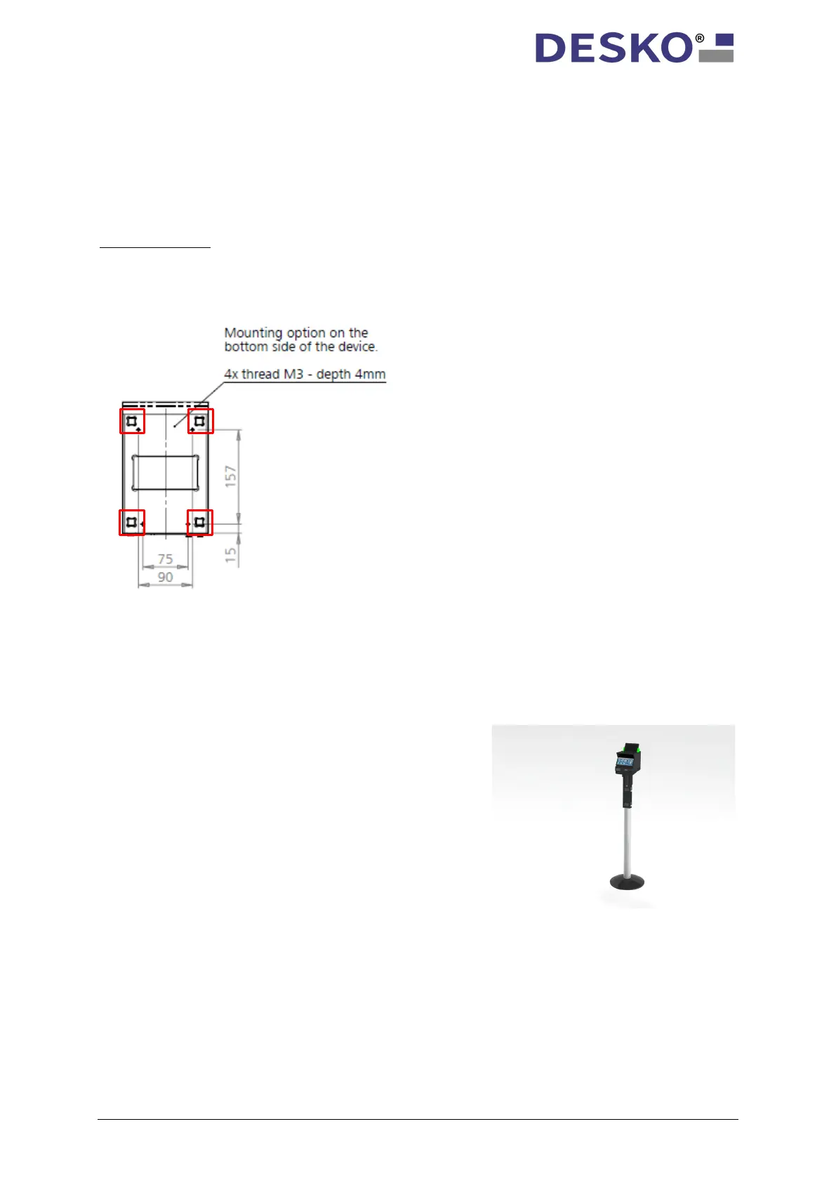 M3 – depth 4 mm at the bottom side of the device, as indicated in the picture below.