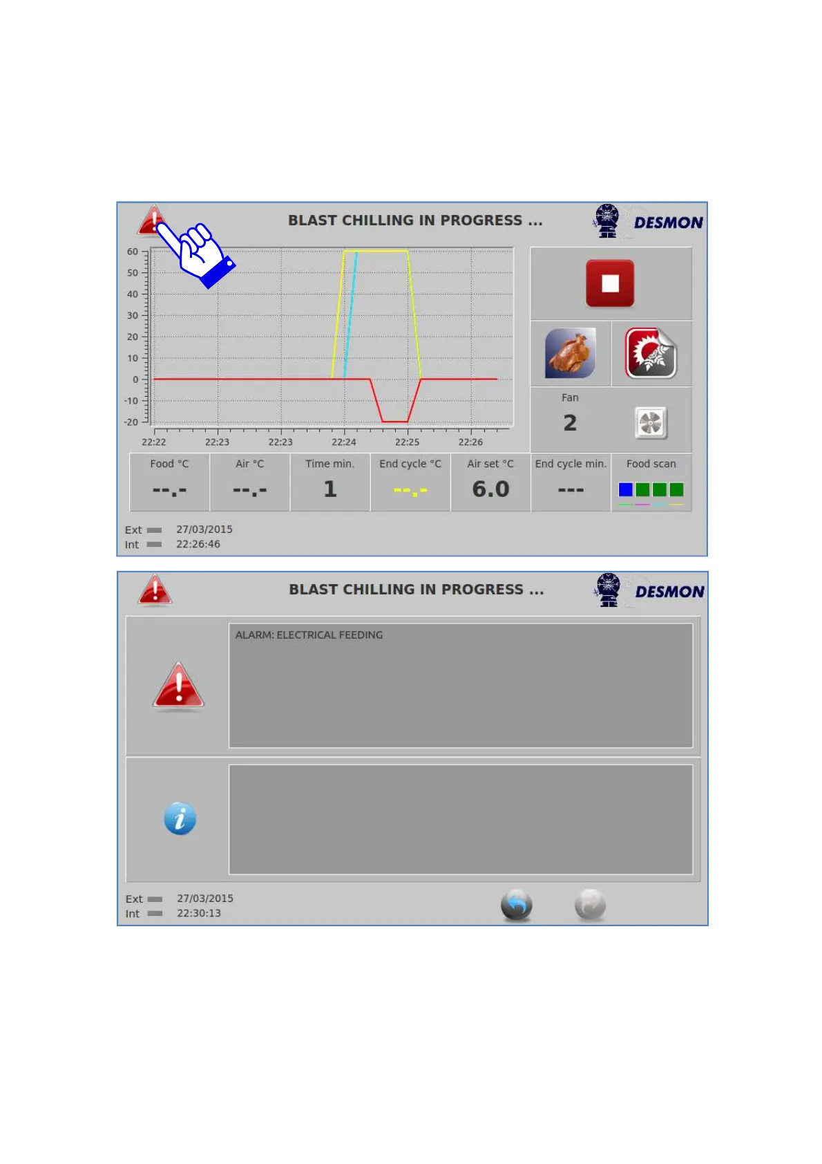 When an alarm is occurring an alert icon will blink on the screen and the