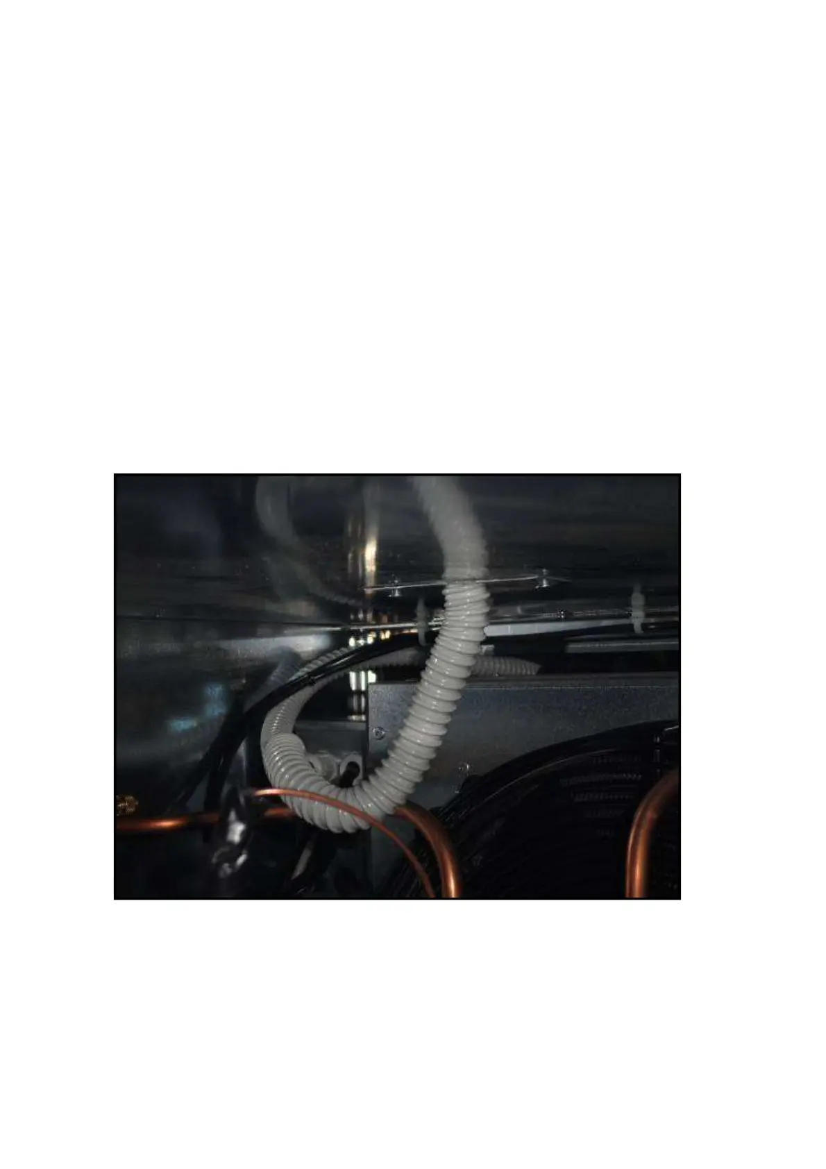 e) Move the drain duct so that it will not interfere with sliding out the compressor base