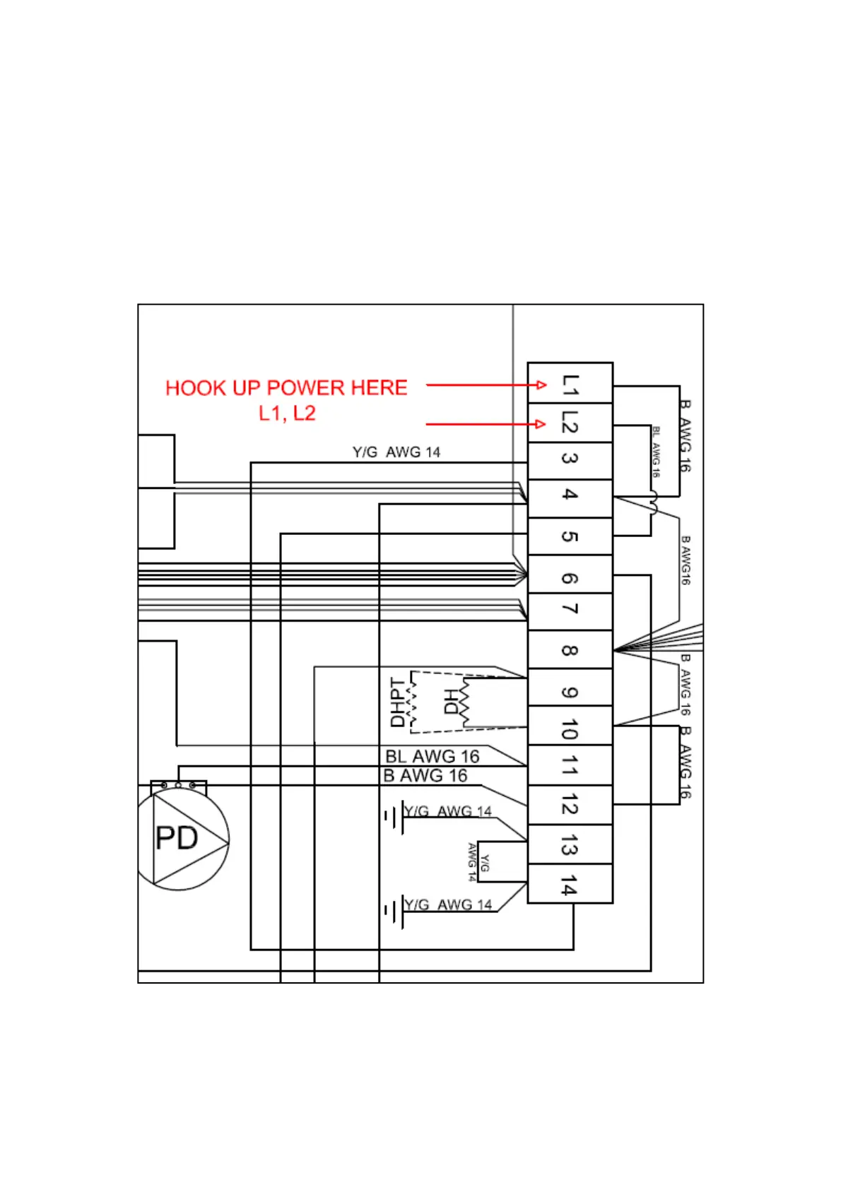 electrical metal box on the top of the cabinet and connect L1 and L2 on the power block as
