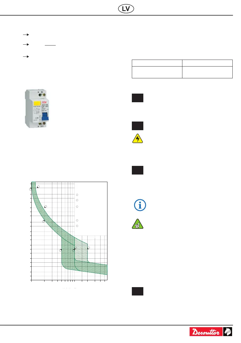 elektroinstalācijā (I = 16 A. Skatiet līkni).