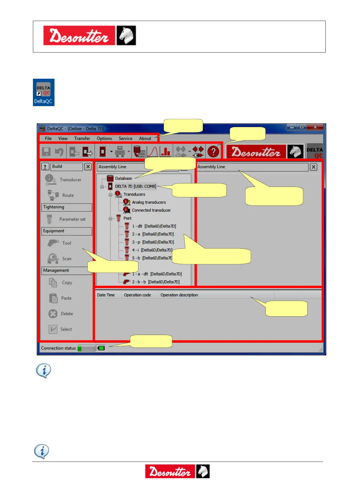 Working in the Delta Map area (Online mode), the Delta is connected to the DeltaQC Software and