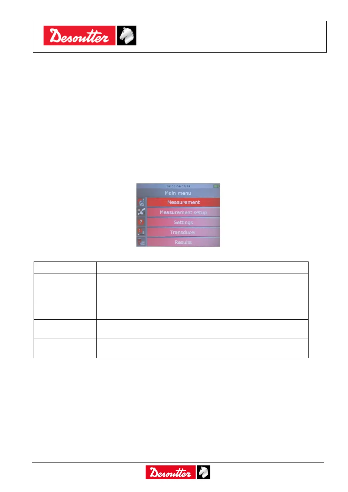 Test of tools and wrenches are executed directly from the main menu; this version does not