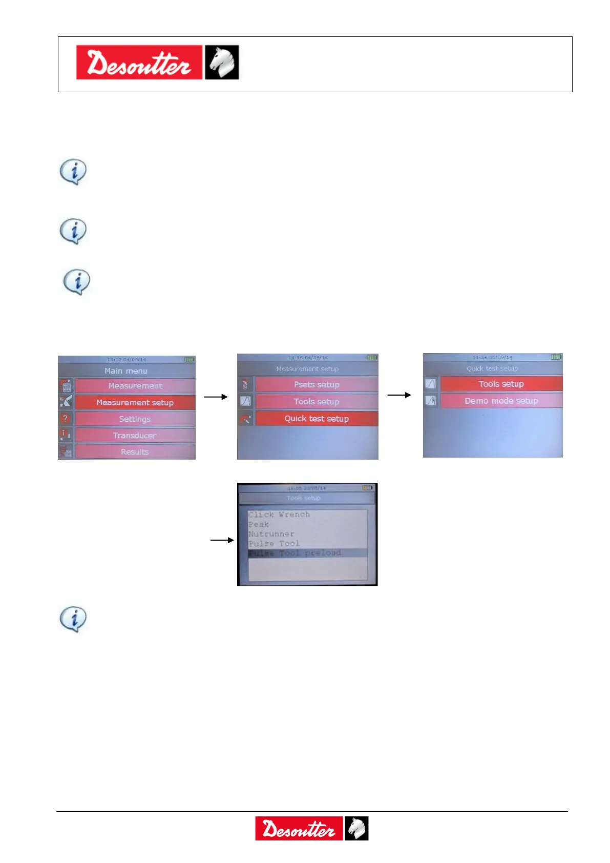 Quick test setup → Tools setup: