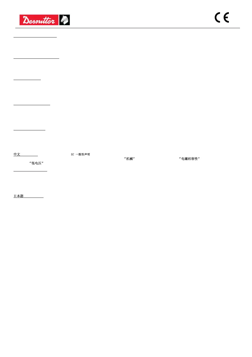 文 (CHINESE) (1) EC 一致性声明- (2) 我们:DESOUTTER -(3) 技术参数资料可以从EU总部获得。- (4) 声明其产品:- (5) 机器类型: