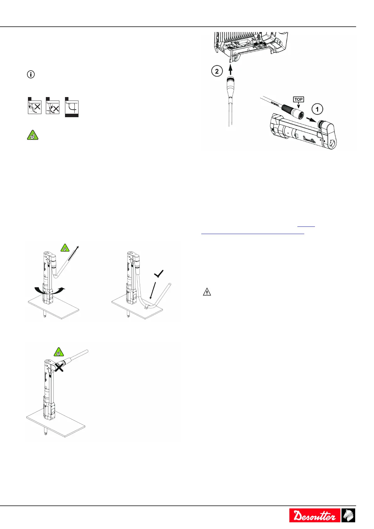 c - Bøjningsradier bør ikke være lavere end 10 gange
