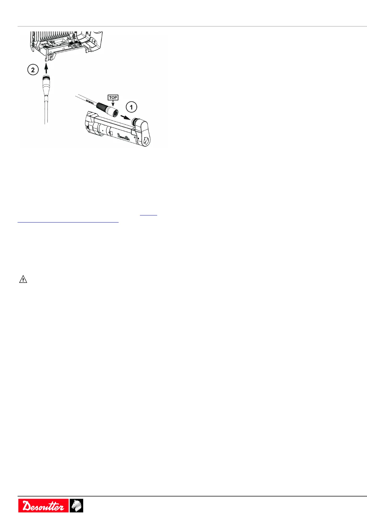 1. Liitä kaapeli työkaluun "TOP"-merkinnän avulla.