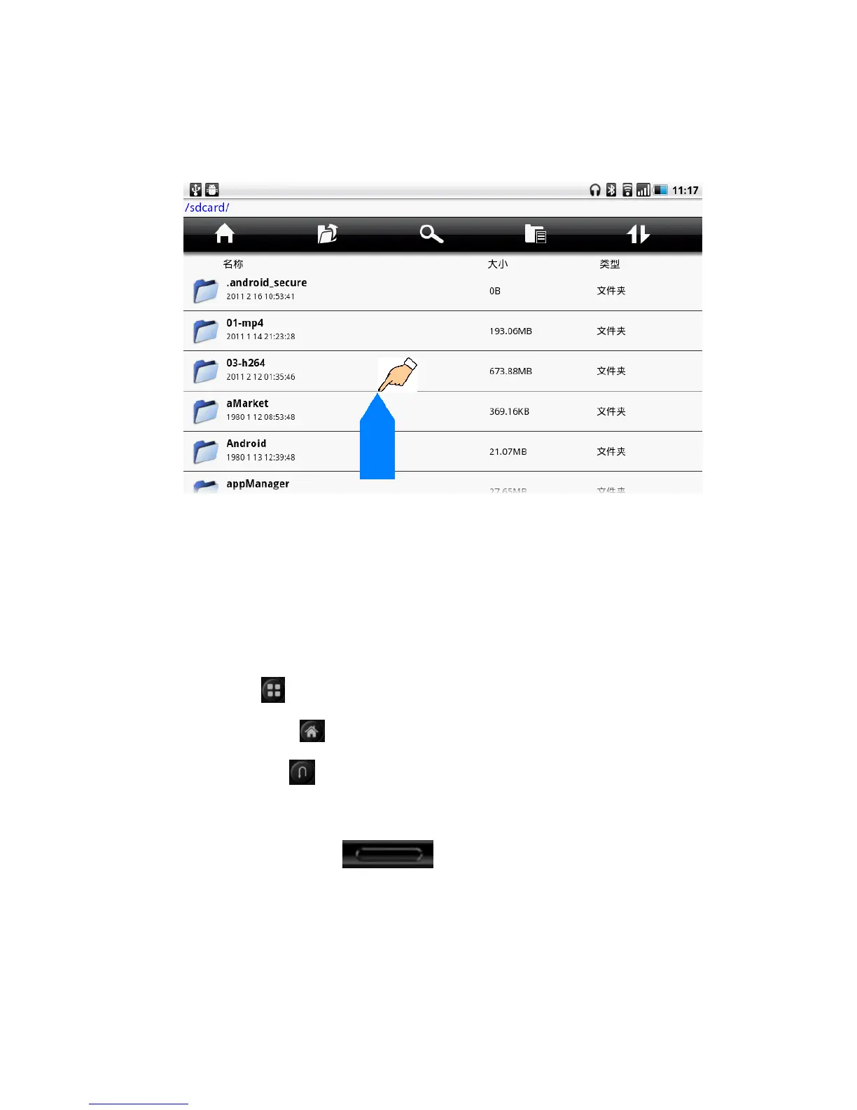 Dragging the touch screen or points to hold the scroll bar, then drag up or