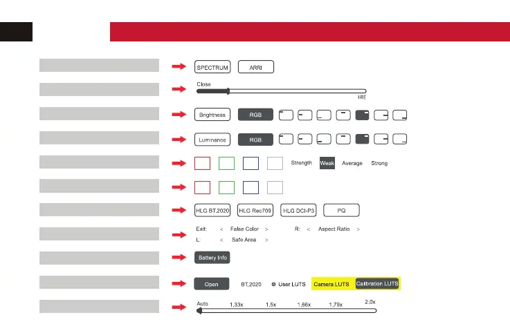 Desview P5II - Settings; Display Function Settings; HDR and Shortcut Key Settings; Battery and LUT Settings