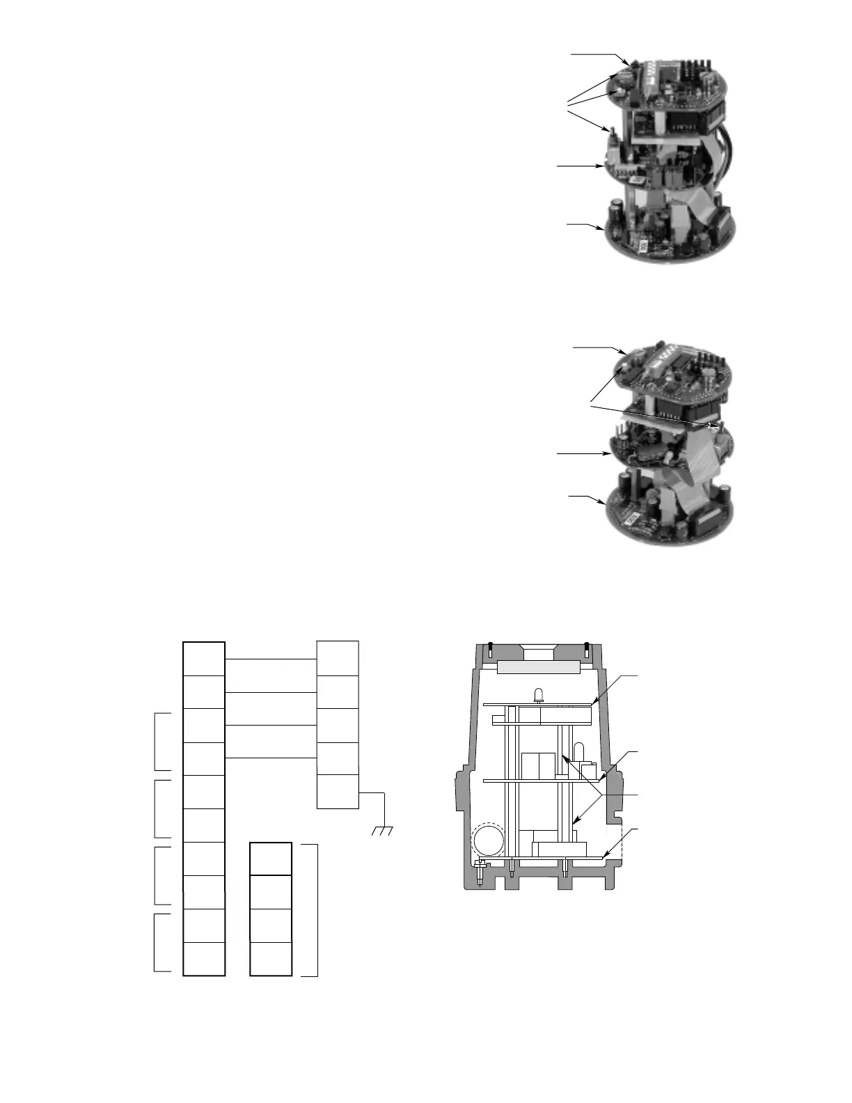 2. The transmitter board is mounted above the termi-