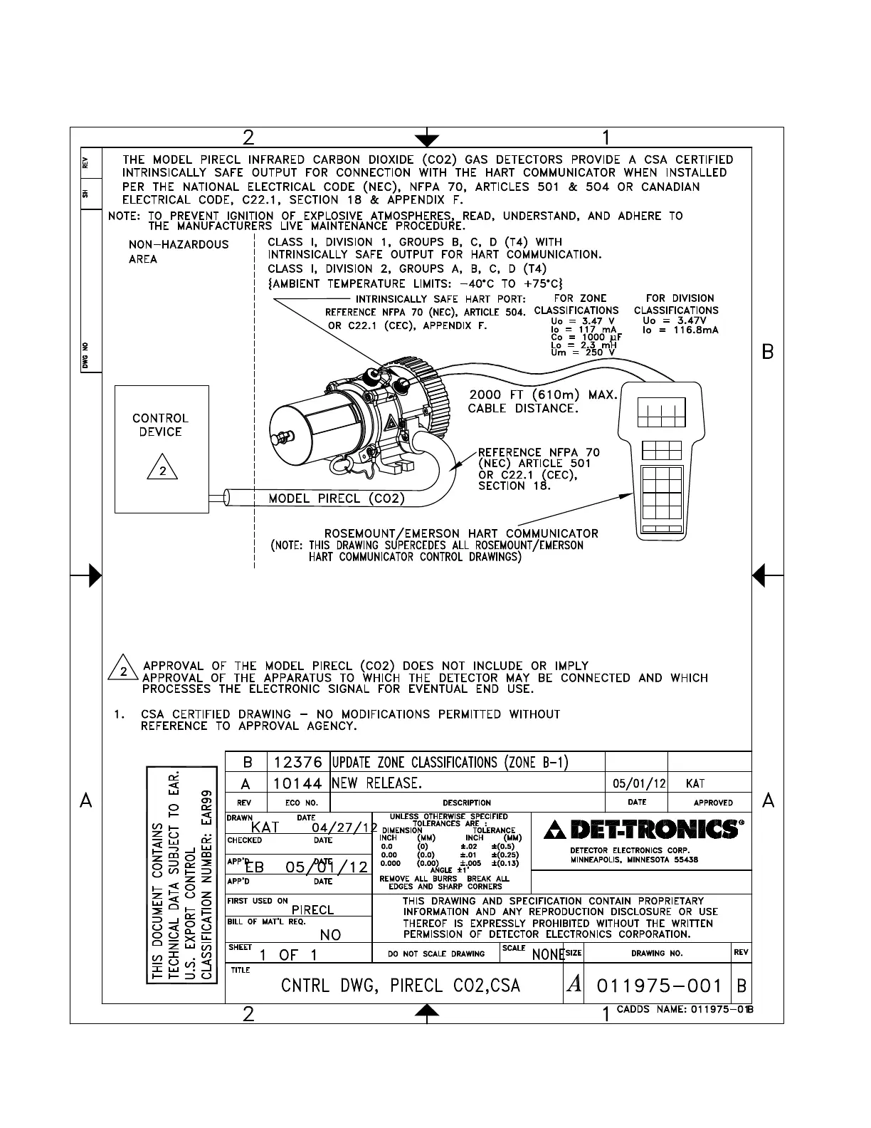 Det-Tronics PointWatch Eclipse PIRECL - APPENDIX H: CONTROL DRAWING; CSA CONTROL DRAWING INFORMATION; CRITICAL SAFETY INSTRUCTION FOR EXPLOSIVE ATMOSPHERES; CSA CERTIFIED DRAWING MODIFICATION RESTRICTIONS
