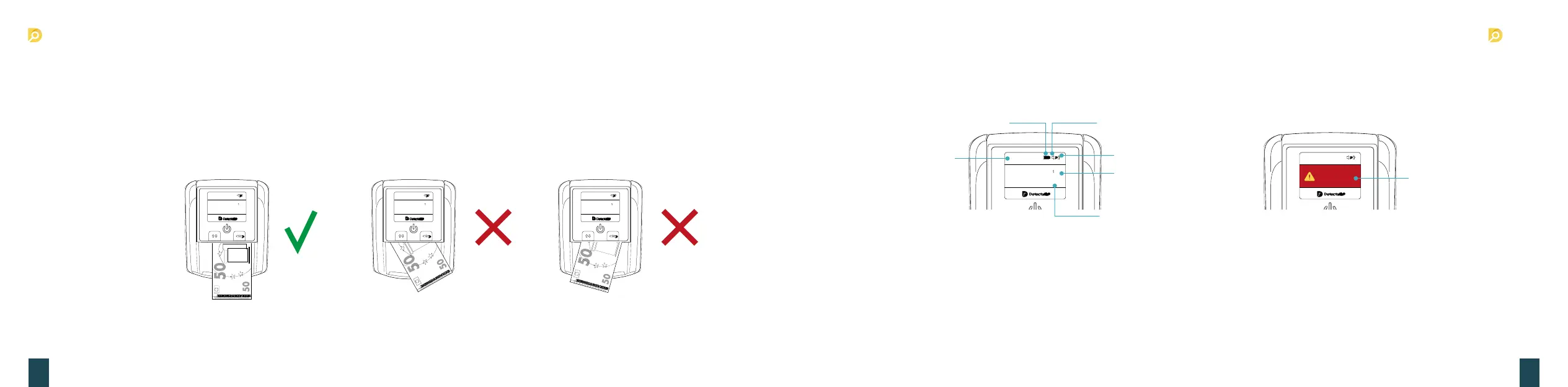 Please insert the banknotes as shown in the pictures below. On the right side of the insertion. If a banknote is incorrectly inserted, the