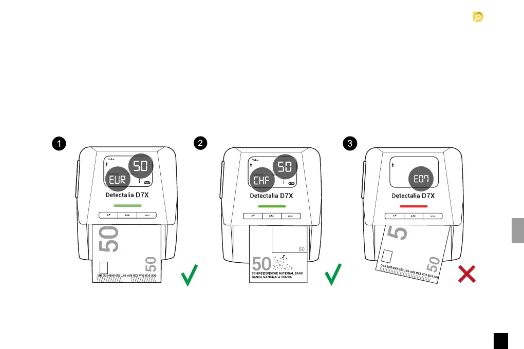 3. Když je zjištěna podezřelá bankovka, bude blikat červené světlo. Zobrazí se chybový kód.