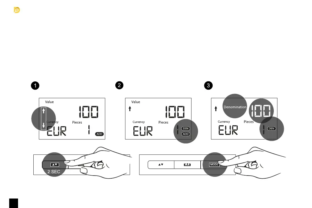 3. Denominační režim (DEN). Přístroj zobrazí označení poslední bankovky, která byla zkontrolována.