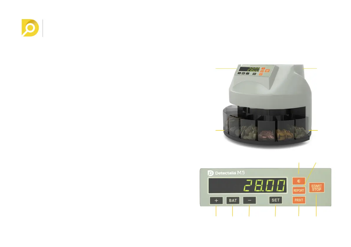 Danke, dass Sie sich für den Münzzähler Detectalia M5 entschieden haben. Sie haben ein Produkt von einfacher Handhabung und