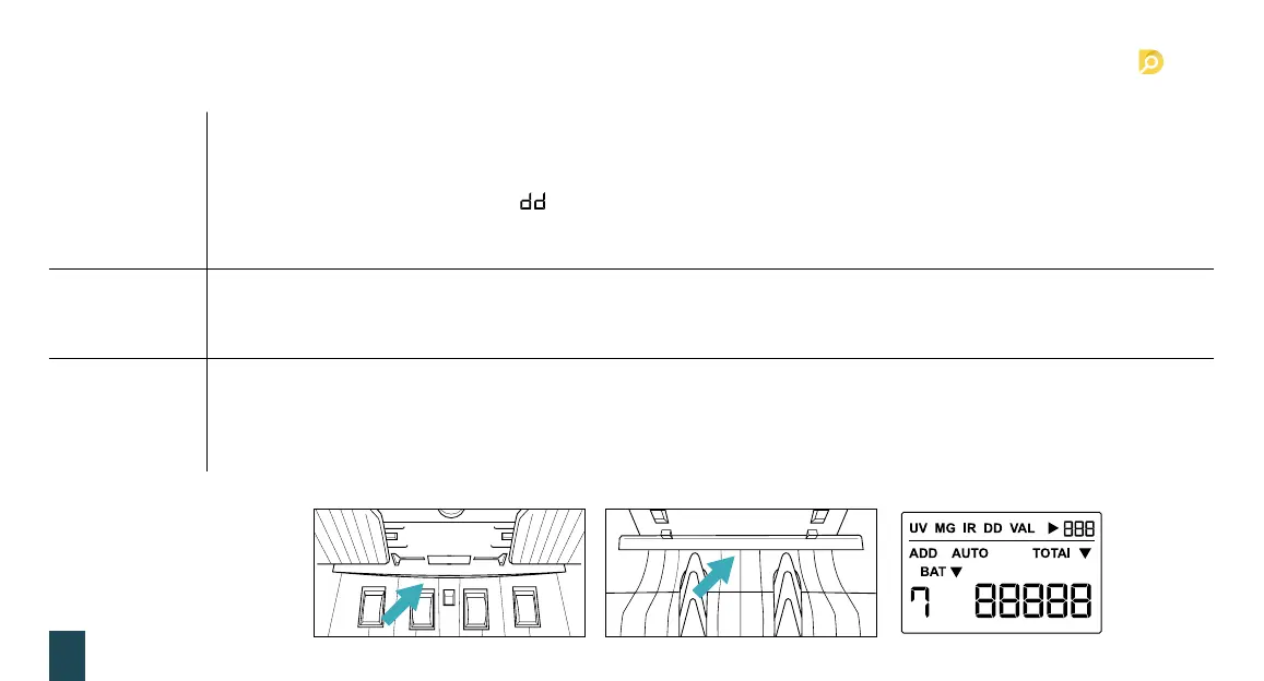 • Durante el conteo, si la máquina detecta una nota doble o dudosa, la máquina dejará de contar y emitirá un pitido, mientras