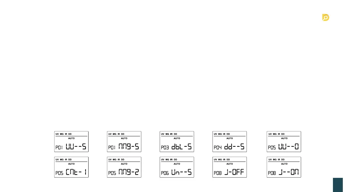 6. P06/Un-5* Referenzwert UV: 0 ist “aus”, 9 ist maximal, Standardwert ist 5 (ref. Foto 6-8).