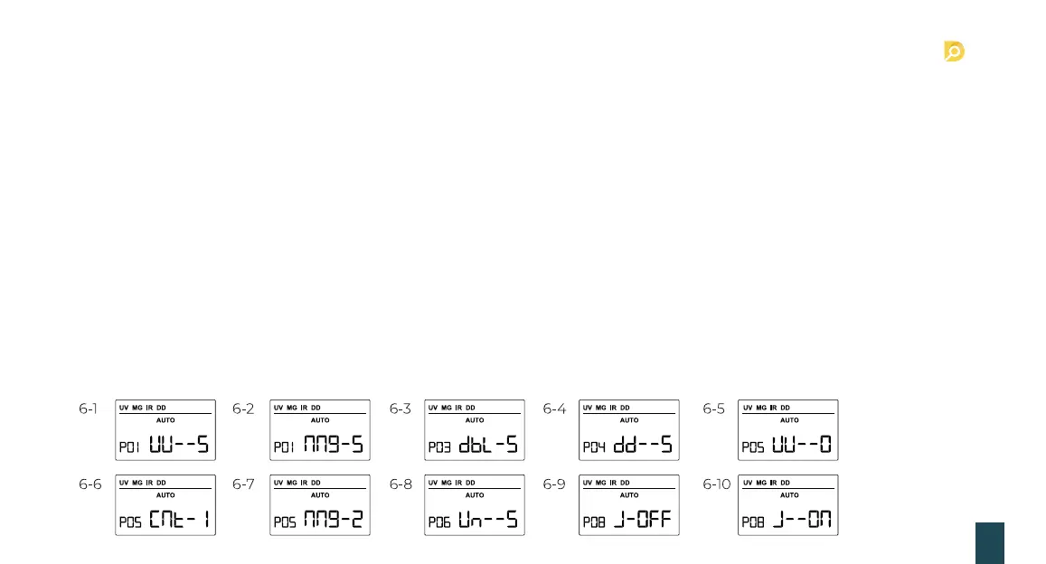 6. P06/Un-5* Valeur de référence UV: 0 correspond à « désactivé », 9 correspond au maximum, la valeur par défaut est de 5 (ref. photo 6-8).
