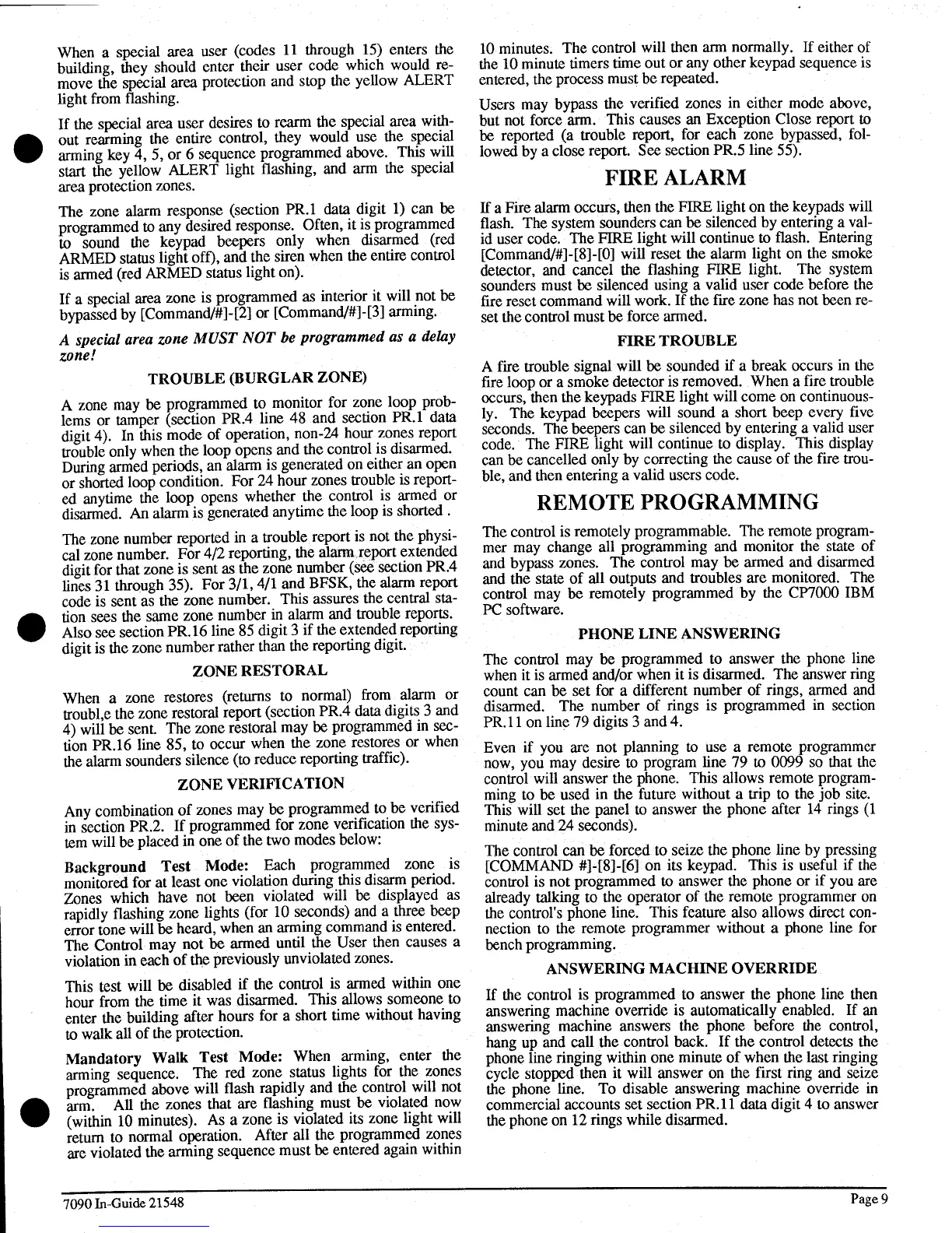 Detection Systems 7090 - Fire Alarm; Remote Programming; Zone Verification; Phone Line Answering