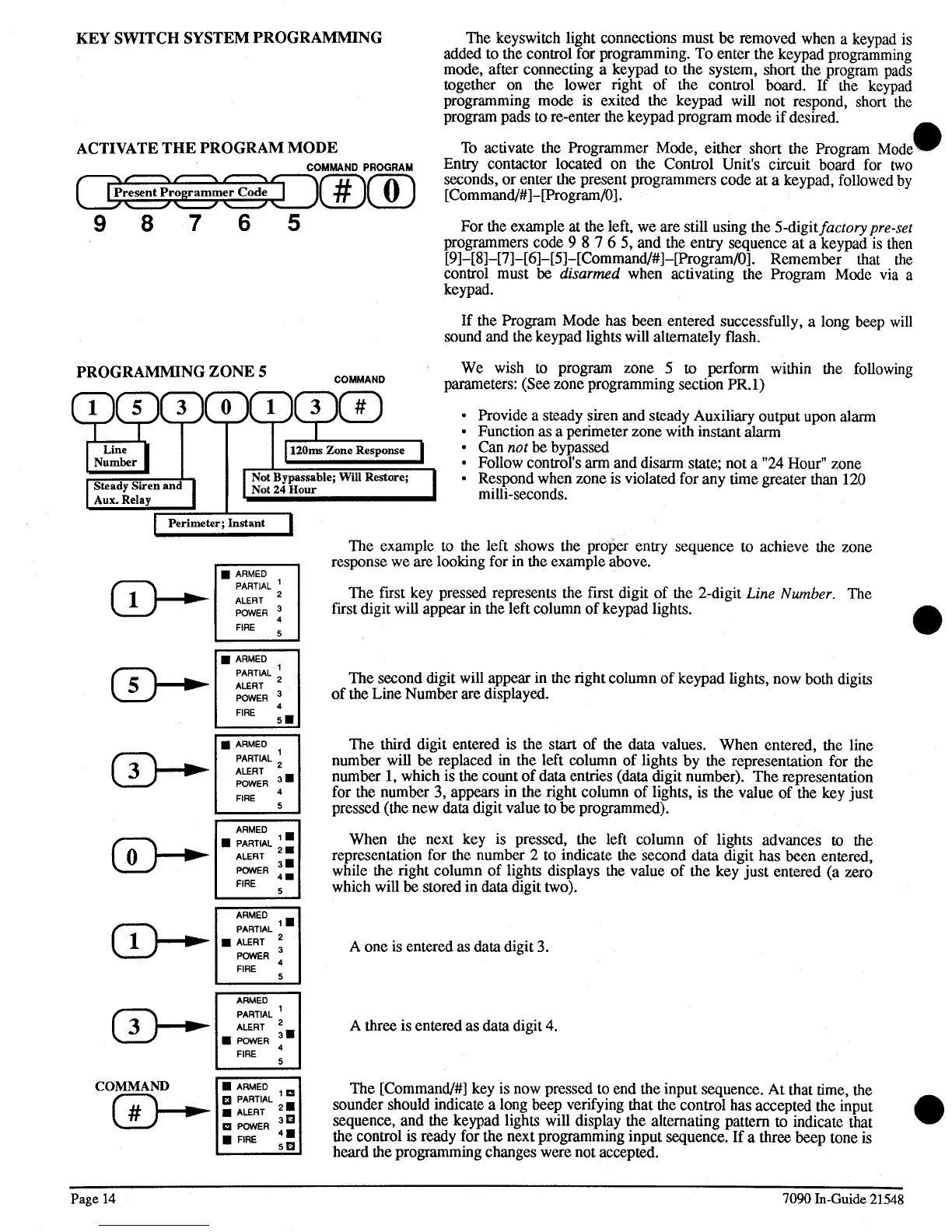 Detection Systems 7090 - Key Switch System Programming; Activate the Program Mode; Programming Zone 5