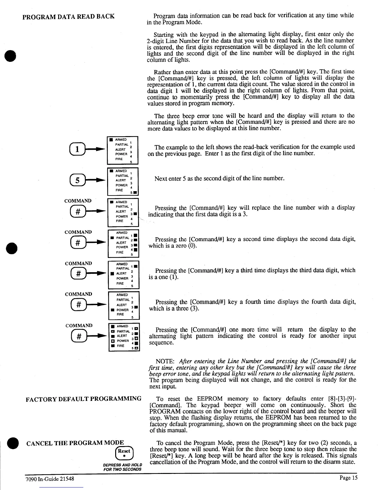 Detection Systems 7090 - Program Data Read Back; Factory Default Programming; Cancel the Program Mode