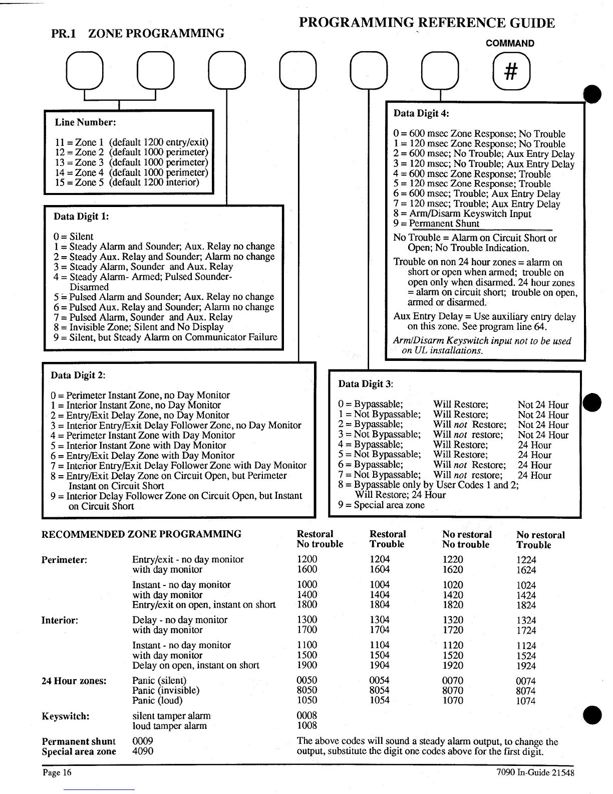 Detection Systems 7090 - Programming Reference Guide; Pr.1 Zone Programming; Recommended Zone Programming