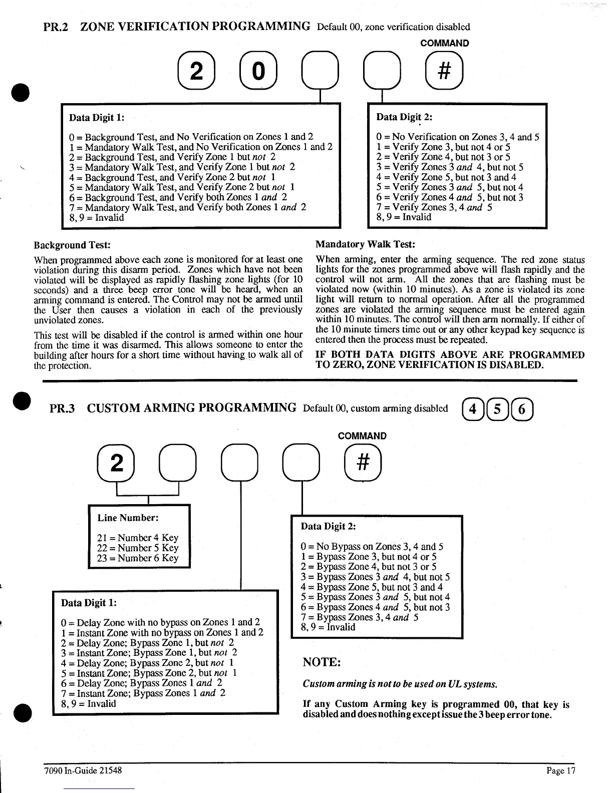 Detection Systems 7090 - Pr.2 Zone Verification Programming; Pr.3 Custom Arming Programming