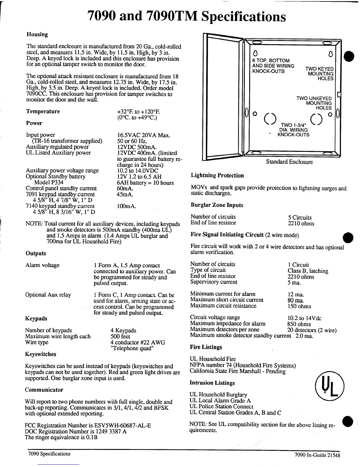 Detection Systems 7090 - 7090 And 7090 TM Specifications