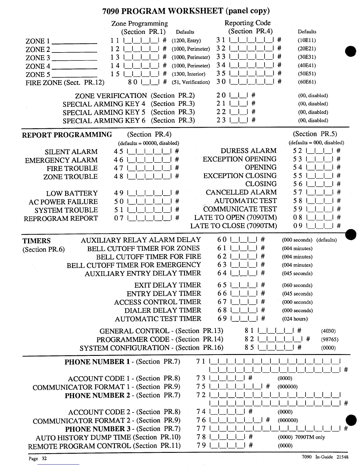 Detection Systems 7090 - 7090 Program Worksheet (Panel Copy)