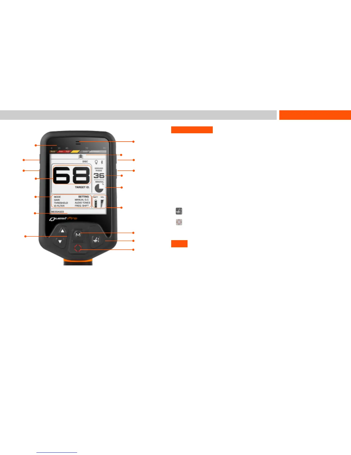 Signal arrows(1): display the target metal I.D. and strength of the target signal. 3 arrows