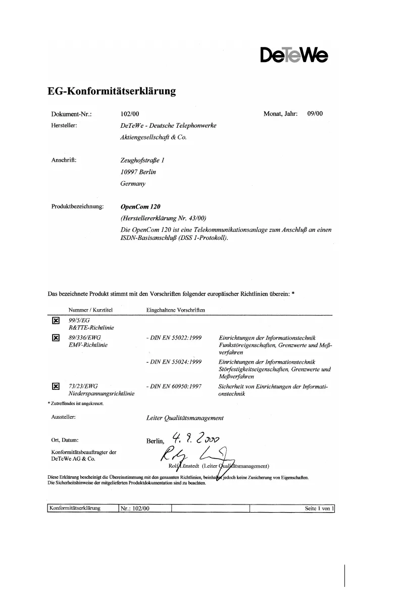 Other manuals for DETEWE opencom 100