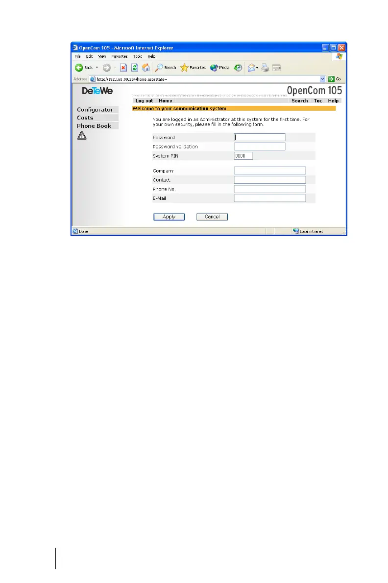 OpenCom 105: dialogue box for initial access