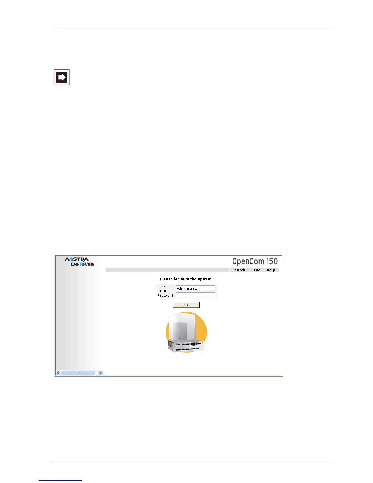 3. To commence configuration, you must first log on. For the initial configuration,