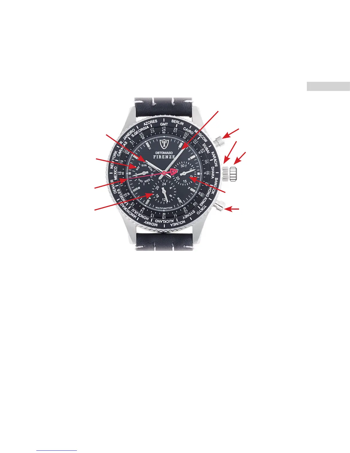 DETOMASO FIRENZE - Quick Setting the Date; Setting the 2 nd Time Zone and the 24 h Display