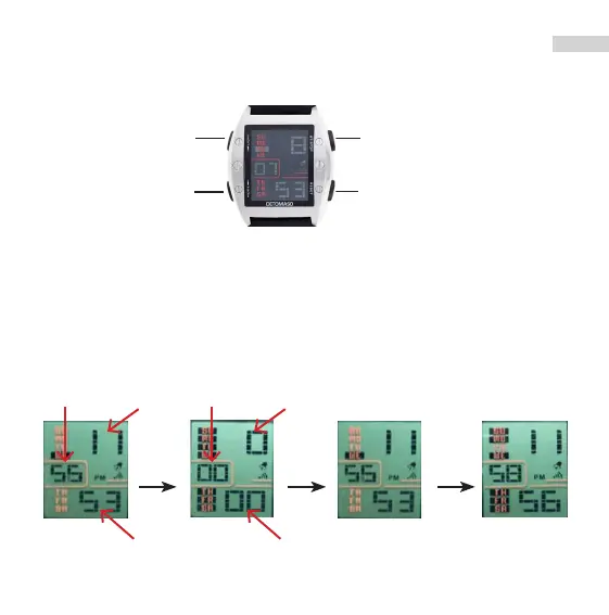 • Afchage LCD avec heure, minute, seconde, mois, jour et jour de la semaine