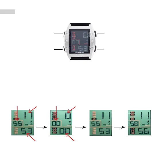 • Indicazione LCD con orario, minuto, secondi, mese, giorno e giorno della