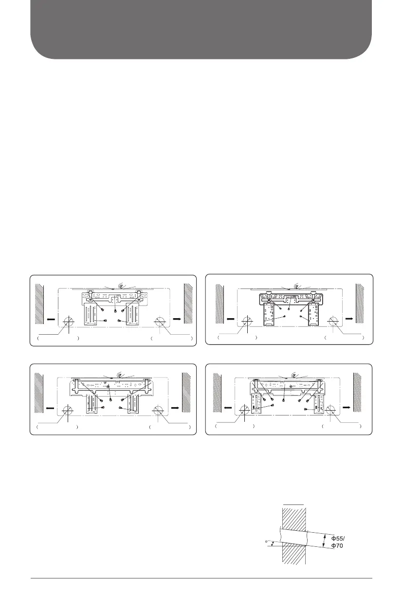 • Open a piping hole with a diameter of Φ55 mm or Φ70 mm depending on selected outlet pipe.