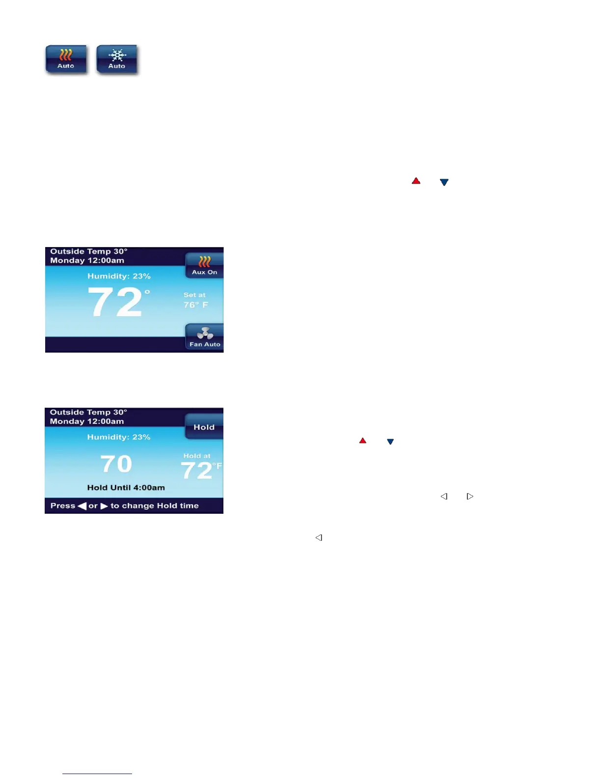 pressing either the or . Your thermostat will maintain