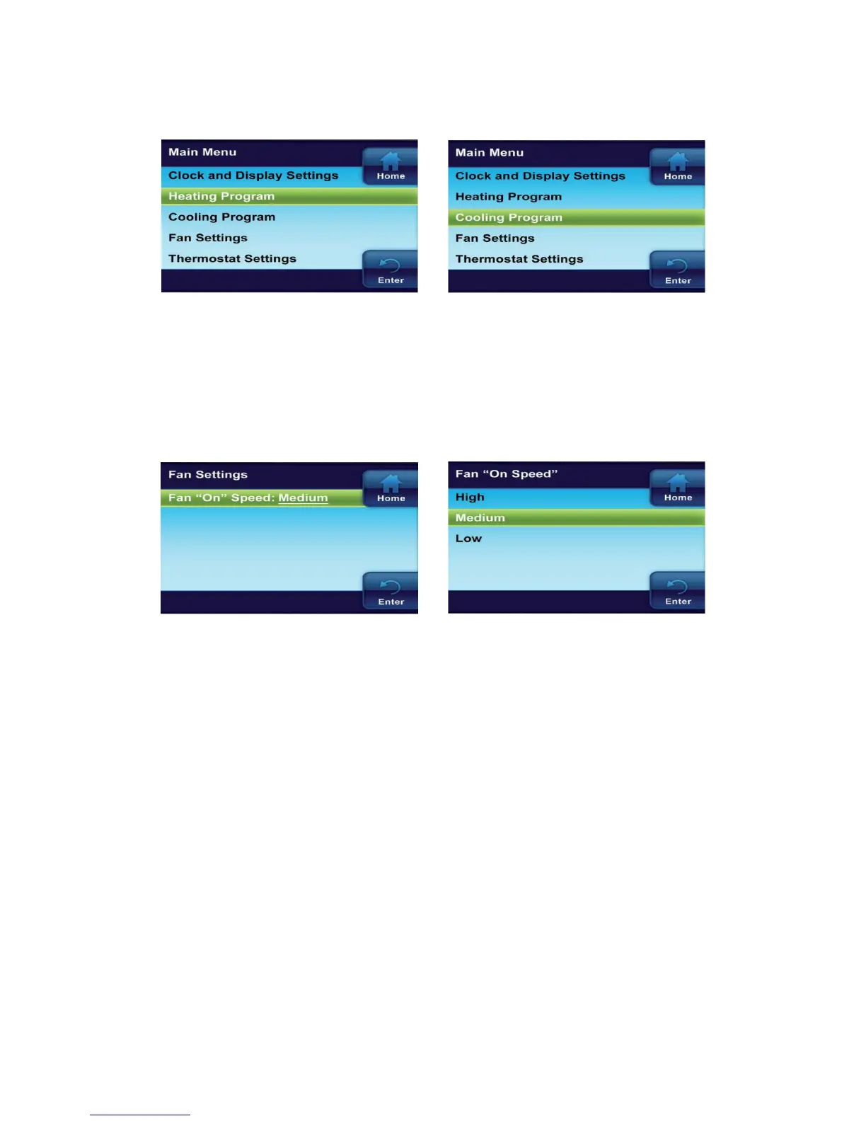This menu selects the speed that the fan will run when selected On with the Fan button.