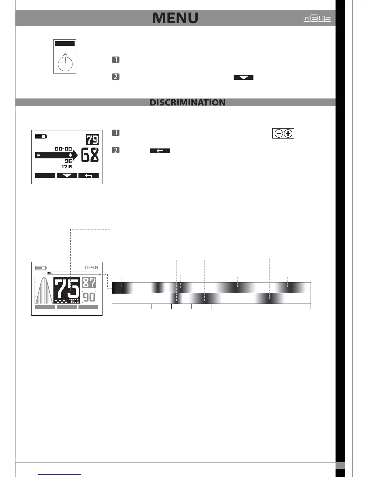 The conductivity scale (0 to 99) for metal targets shown below will help