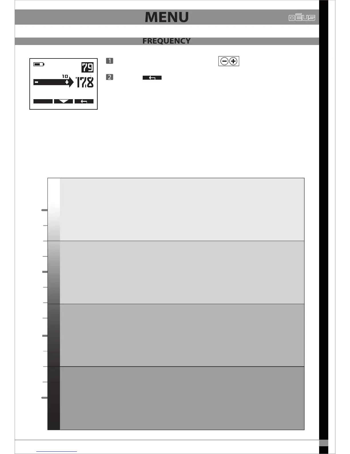 Dēus gives you the choice of four detection frequencies (4 kHz, 8 kHz,