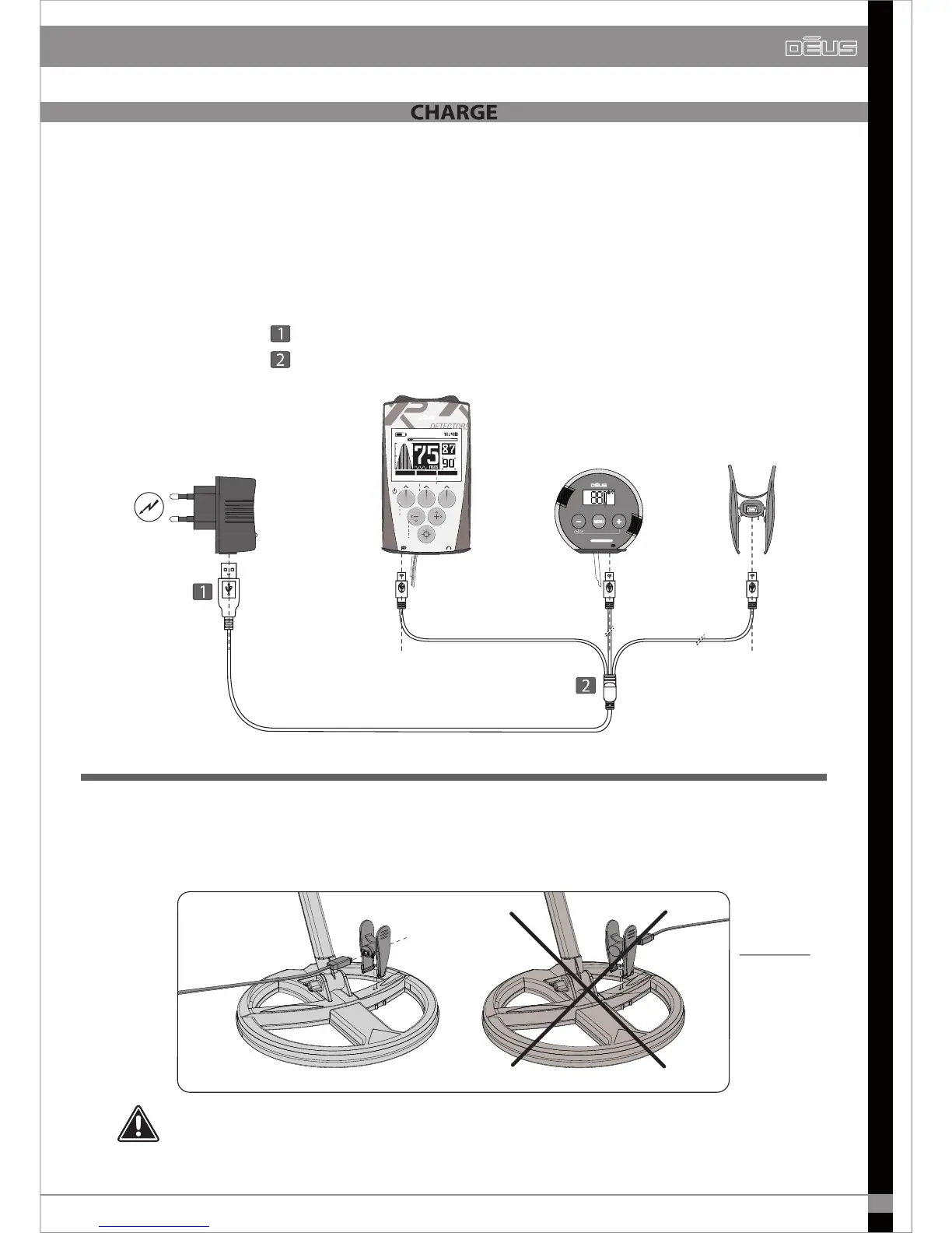 The search coil is charged via the connection clamp supplied, which is connected to the coil